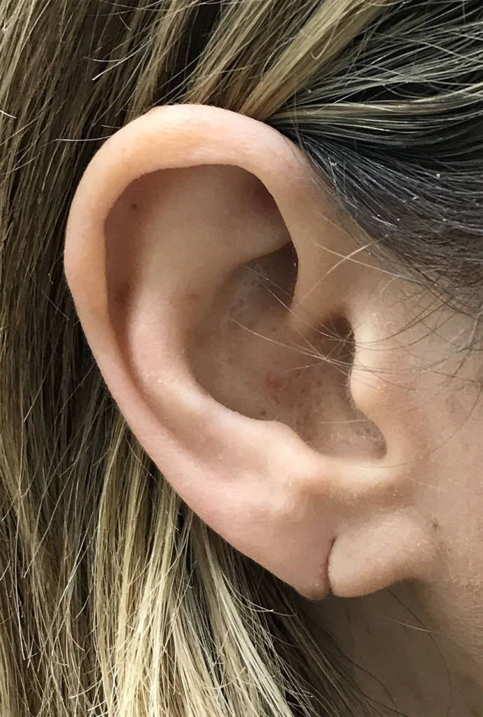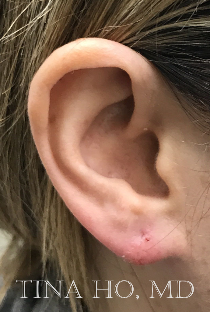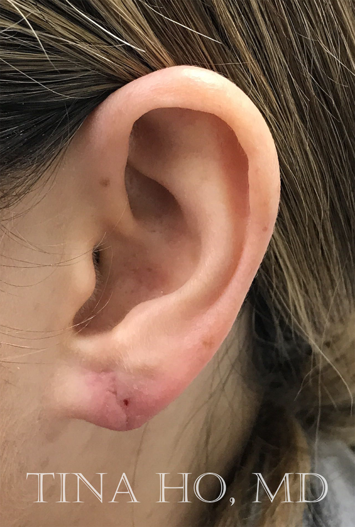 29 year-old female with complete tears who underwent earlobeplasty for ear rejuvenation