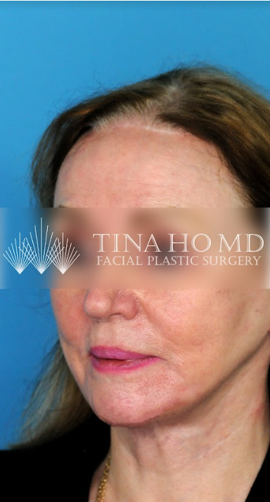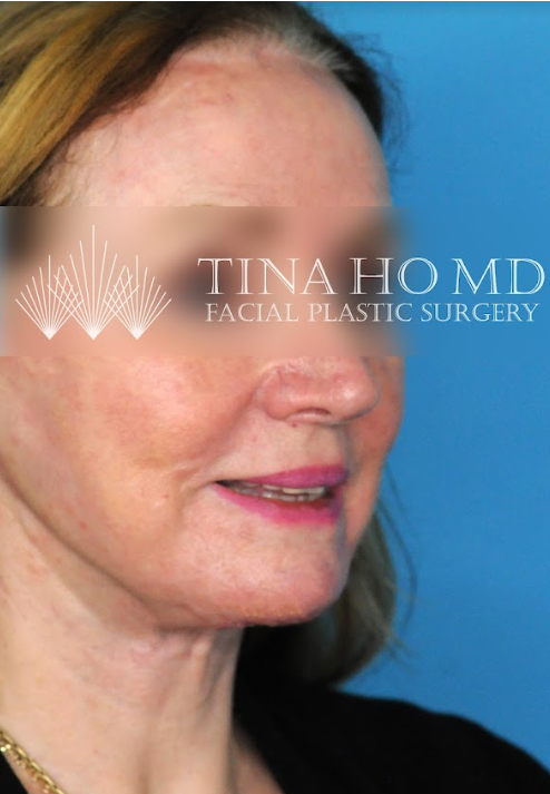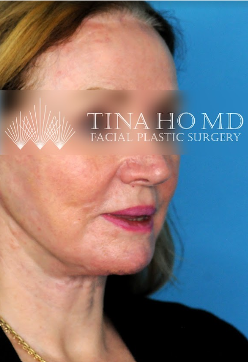 60 year-old female who underwent revision facial fat transfer, CO2 laser resurfacing, and revision neck lift for jawline contouring and neck rejuvenation