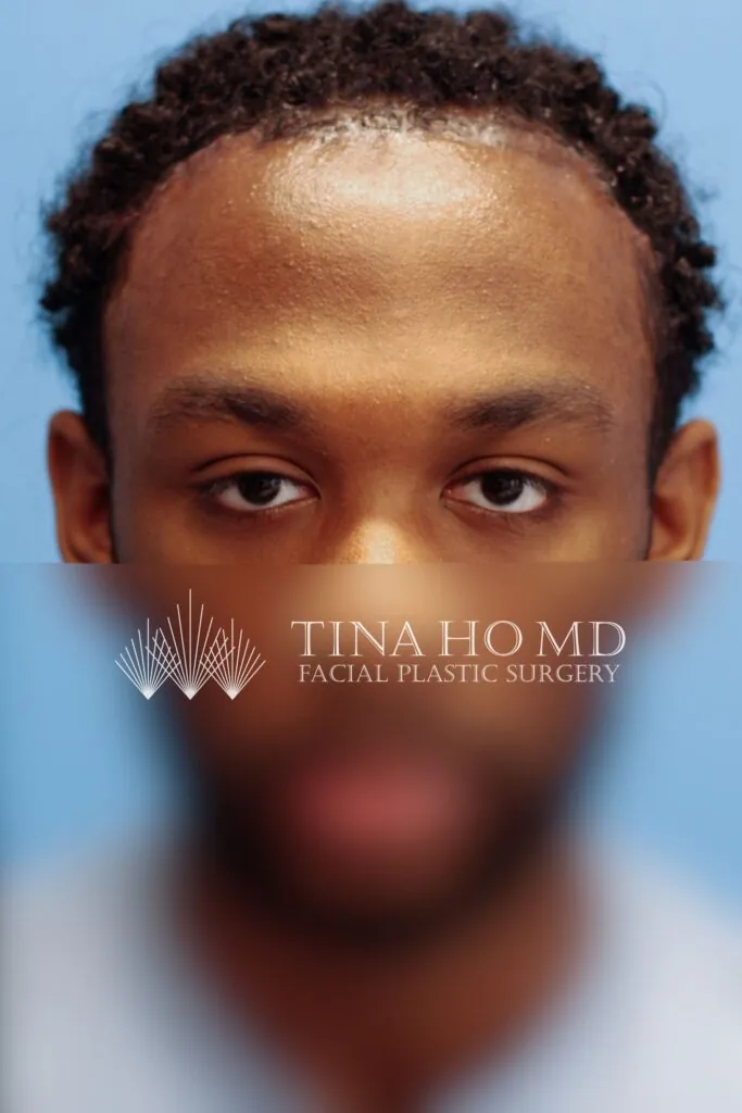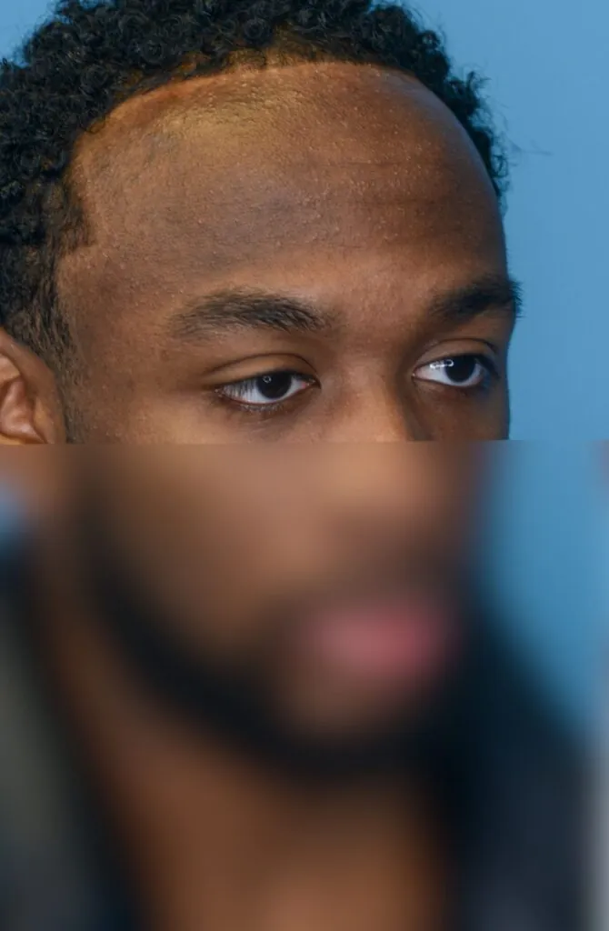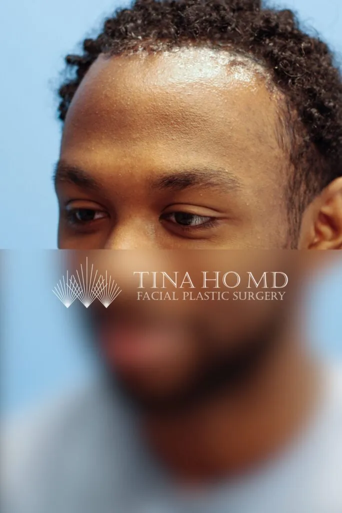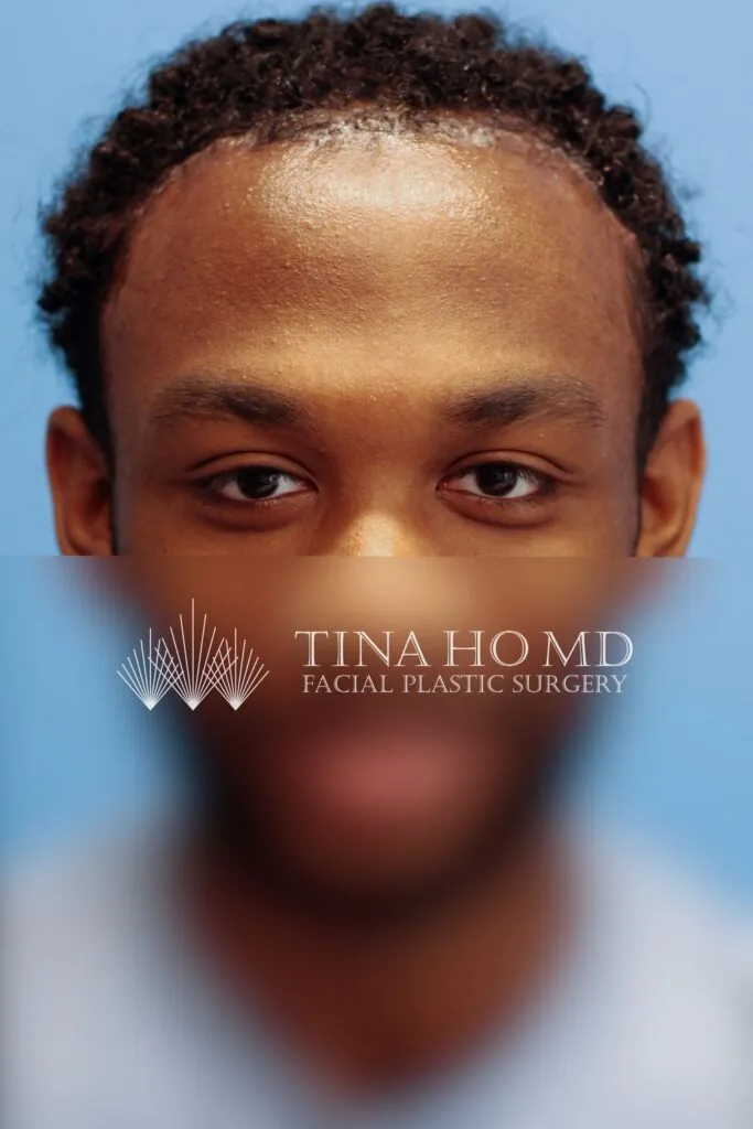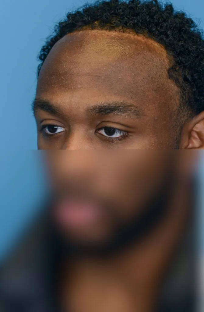 22 year-old male who underwent forehead reduction or hairline lowering surgery to advance his hairline and reduce the height of his forehead.