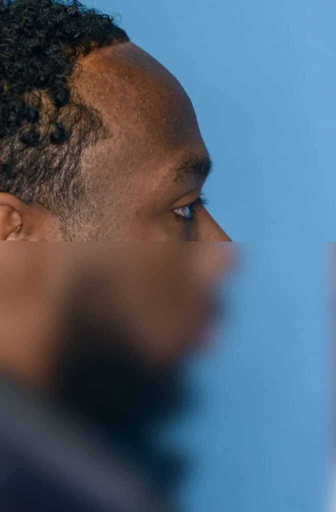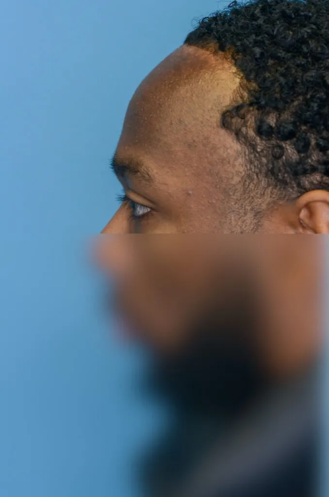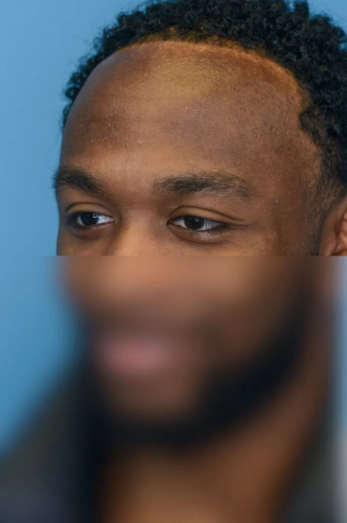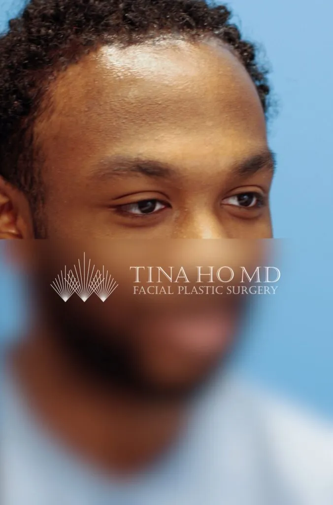 22 year-old male who underwent forehead reduction or hairline lowering surgery to advance his hairline and reduce the height of his forehead.