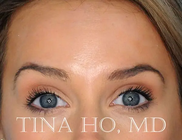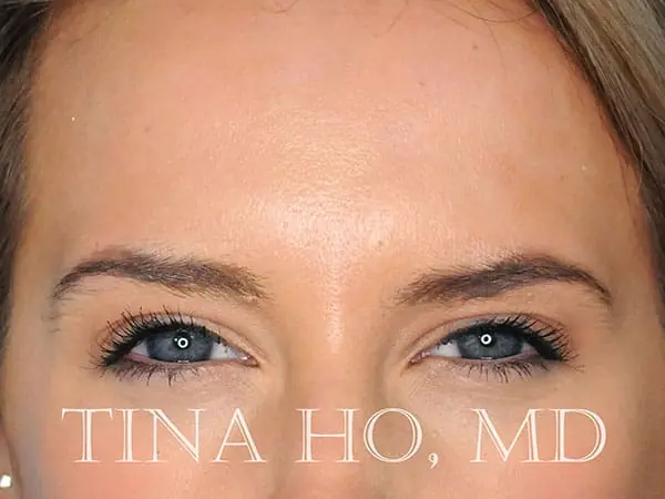 27 year-old female who received neurotoxin to the upper face including forehead and glabella (area between the brows)