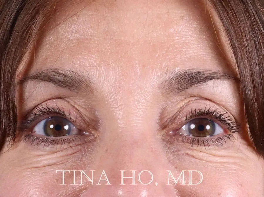 55 year-old female who received neurotoxin injection to the upper face and filler to the cheeks and areas under the lower eyelids for treatment of tear trough deformity and for facial rejuvenation.