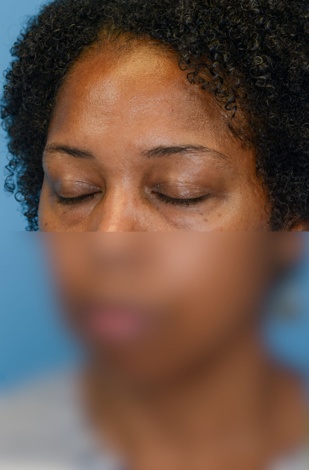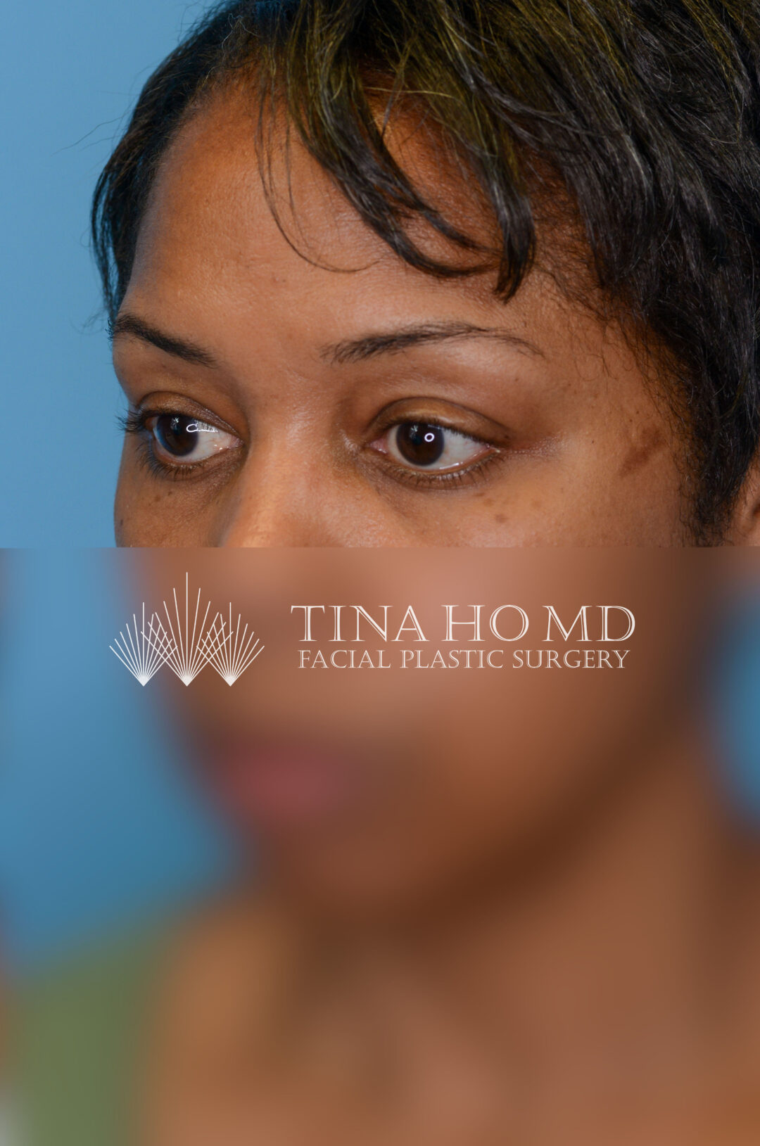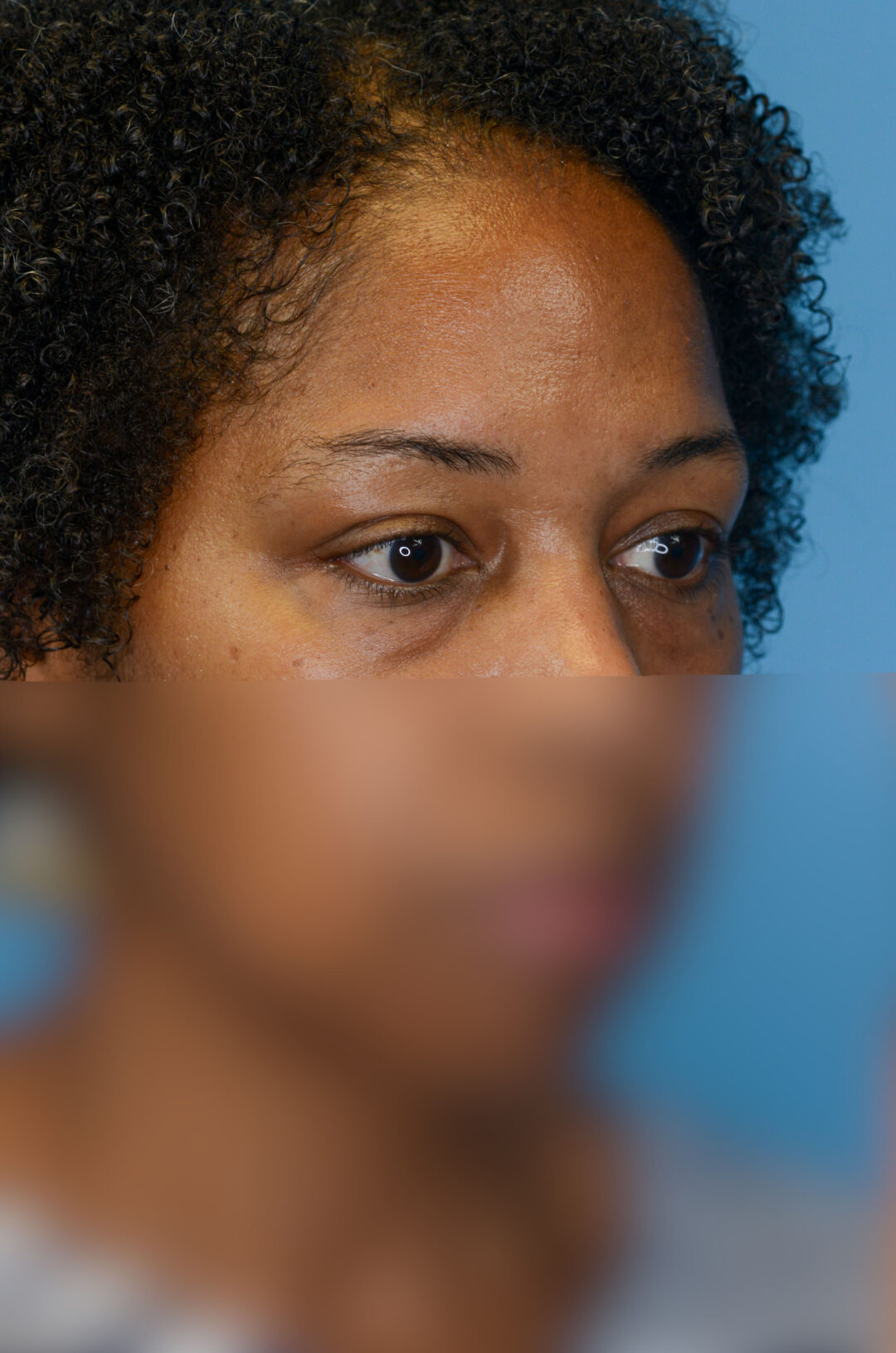 48 year-old female who underwent lower blepharoplasty with facial fat transfer and CO2 laser resurfacing for eyelid rejuvenation.