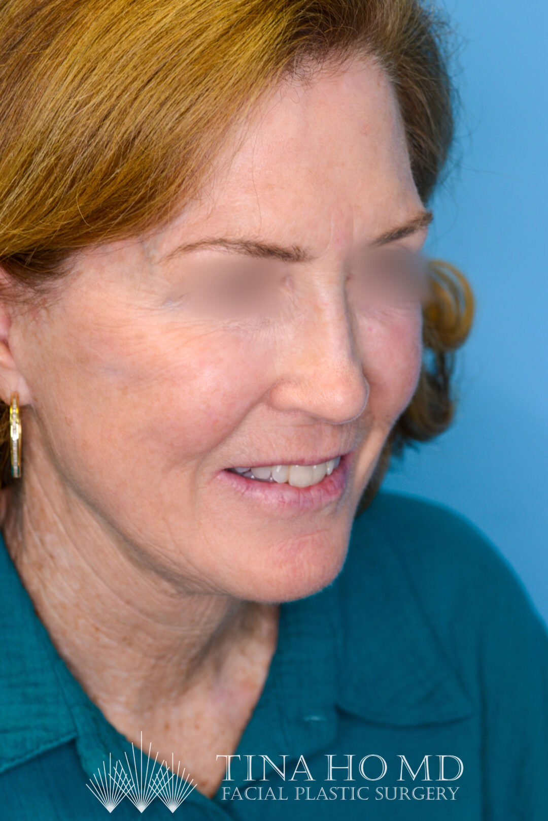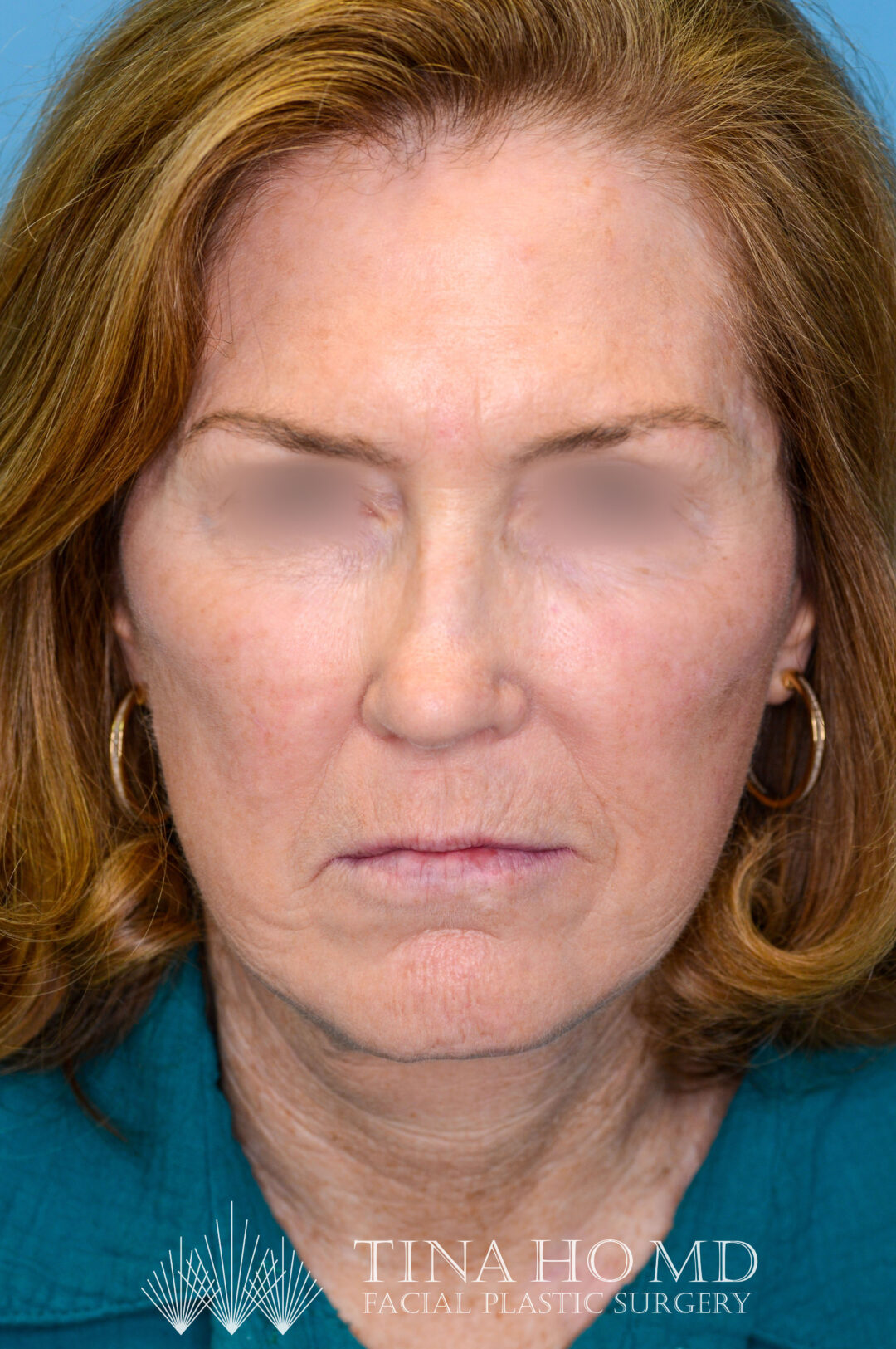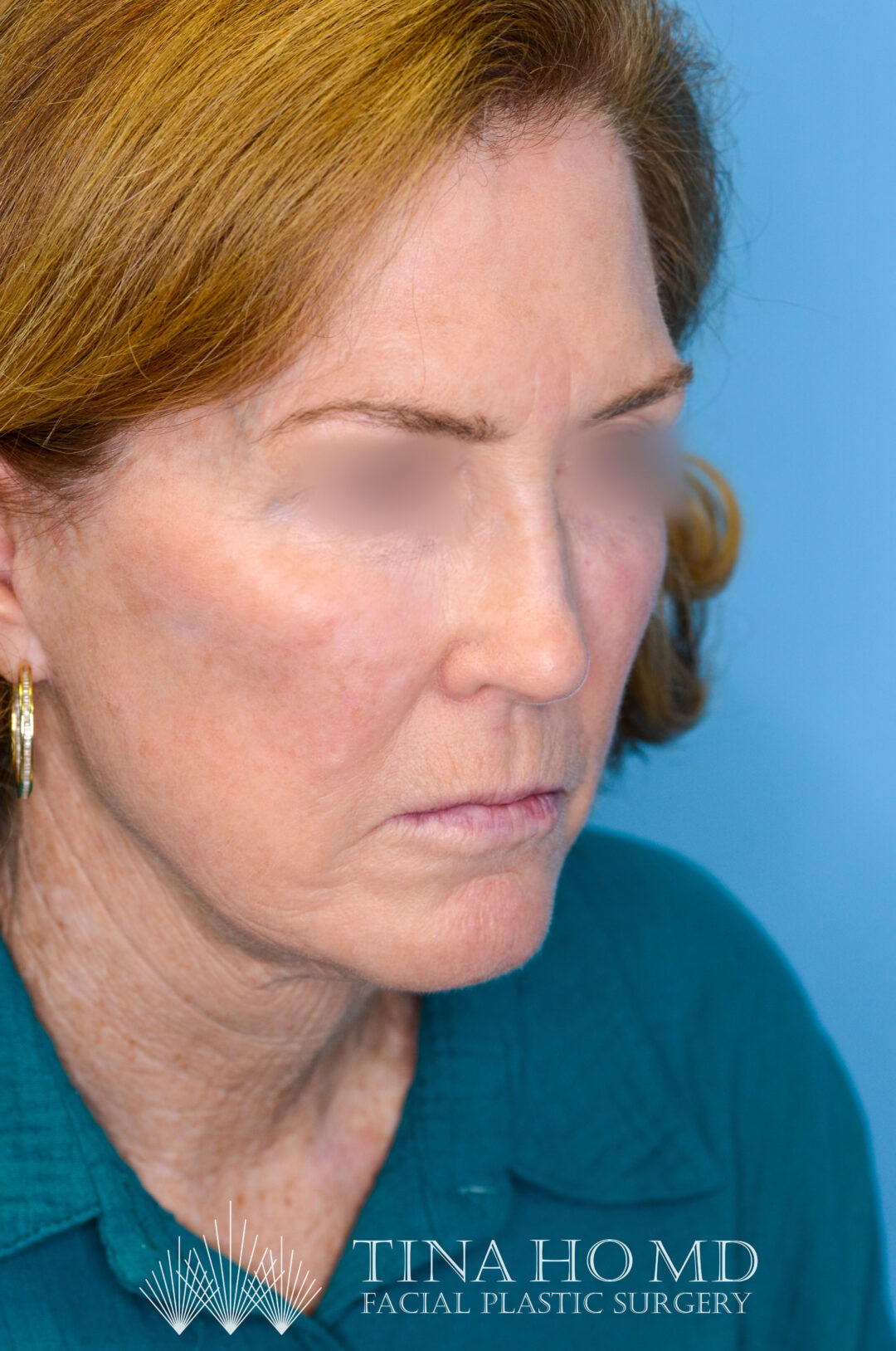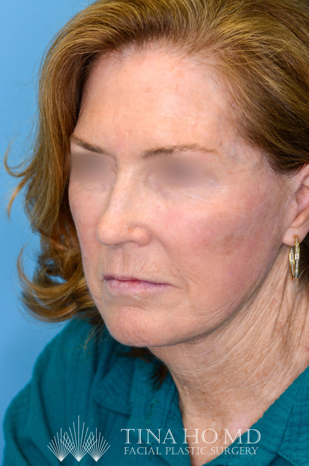 63 year-old female with concerns of aging face and neck and lack of jawline definition who underwent deep plane facelift and deep neck lift for facial rejuvenation and neck rejuvenation as well as facial and jawline contouring.