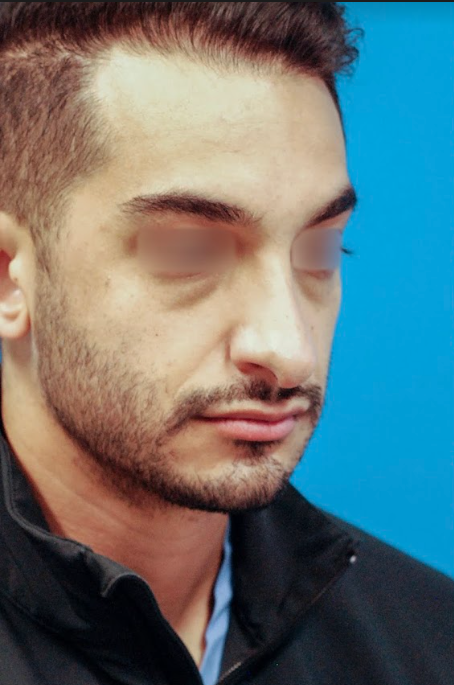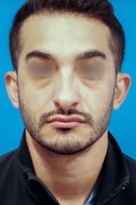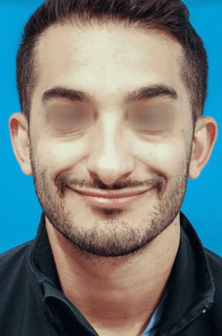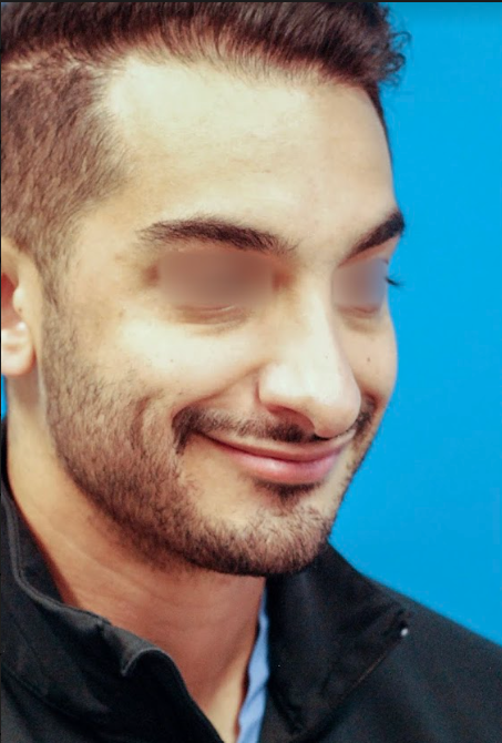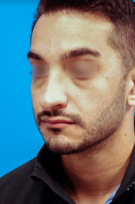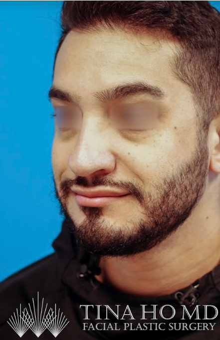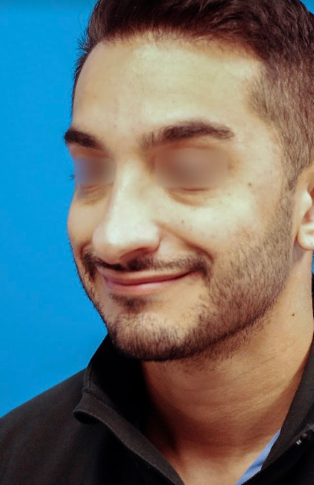 31 year-old male who underwent revision rhinoplasty to lift and shorten his droopy, overprojected nasal tip
