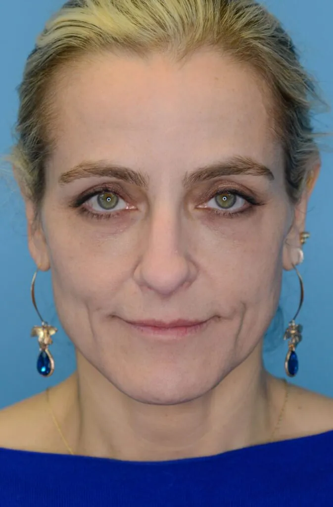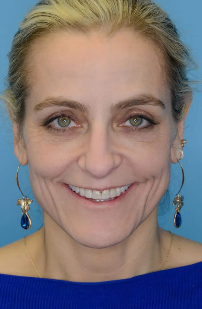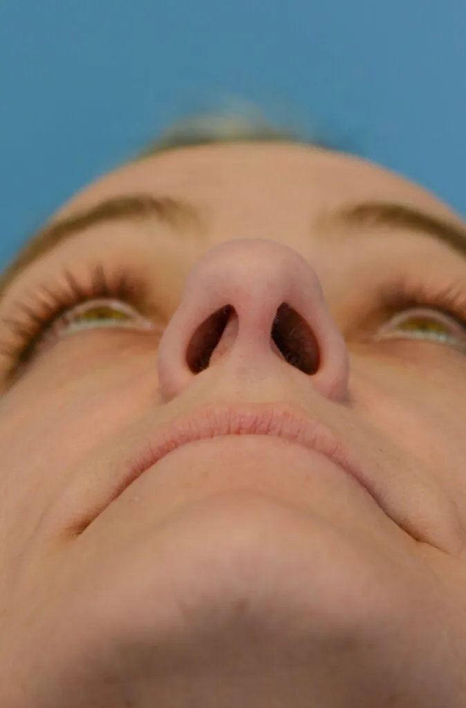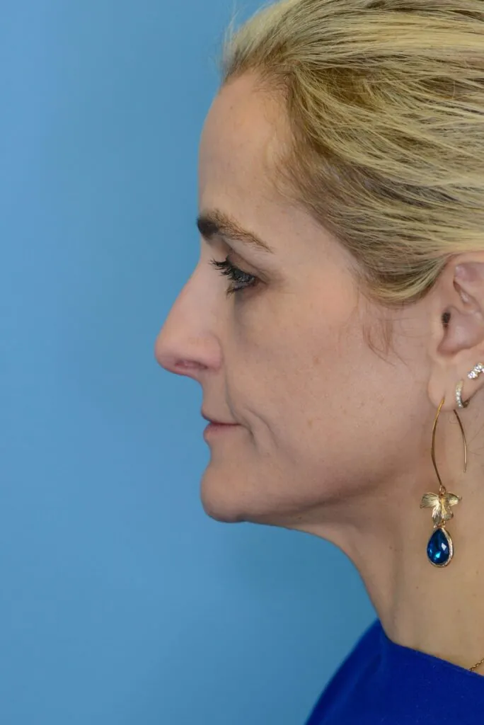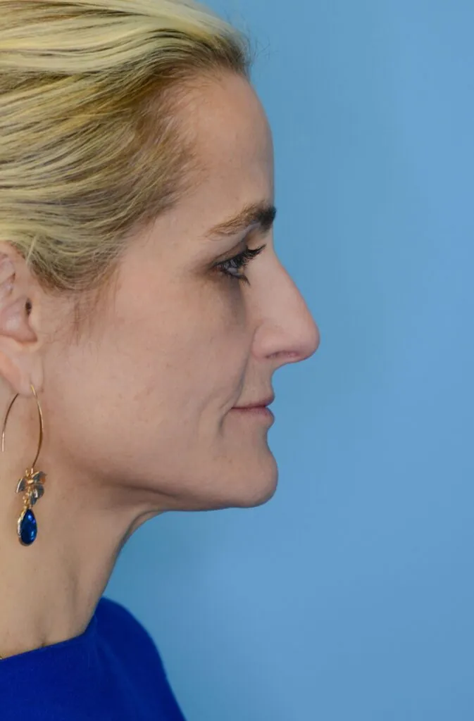50 year-old female with concerns of deviated nose with dorsal hump and bulbous, drooping nasal tip as well as nasal obstruction who underwent primary septorhinoplasty with nasal valve repair to reduce her dorsum, straighten her nose, lift and refine her nasal tip, and address her deviated septum and nasal valve collapse.