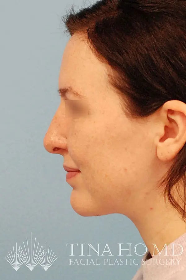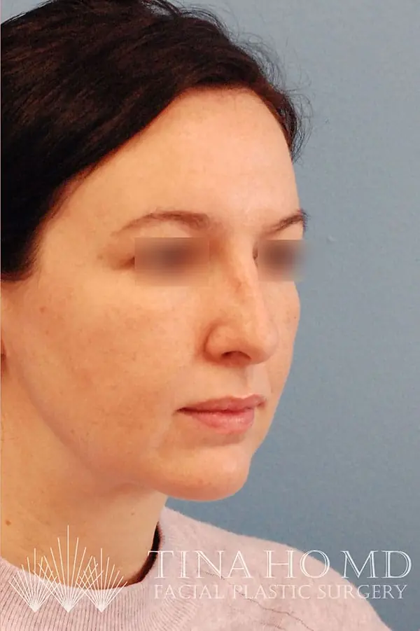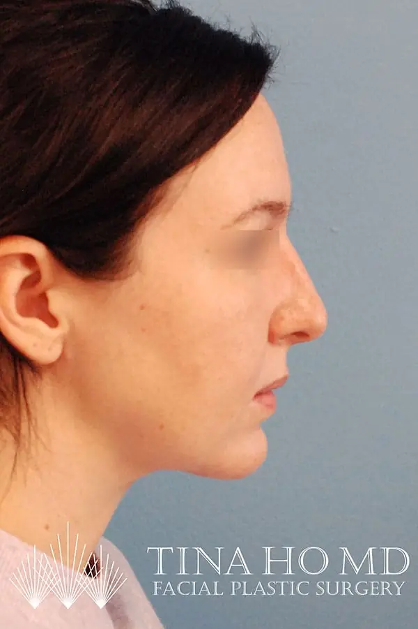 33 year-old female who underwent closed rhinoplasty to reduce dorsal hump and improve nasal tip rotation as well as deep plane mini neck lift including chin liposuction to improve jawline contour