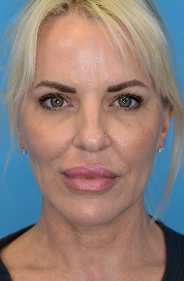 48 year-old female with concerns of facial and neck aging and skin laxity who underwent deep plane facelift and deep neck lift for facial rejuvenation and facial and jawline contouring