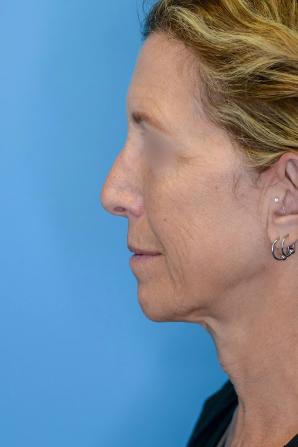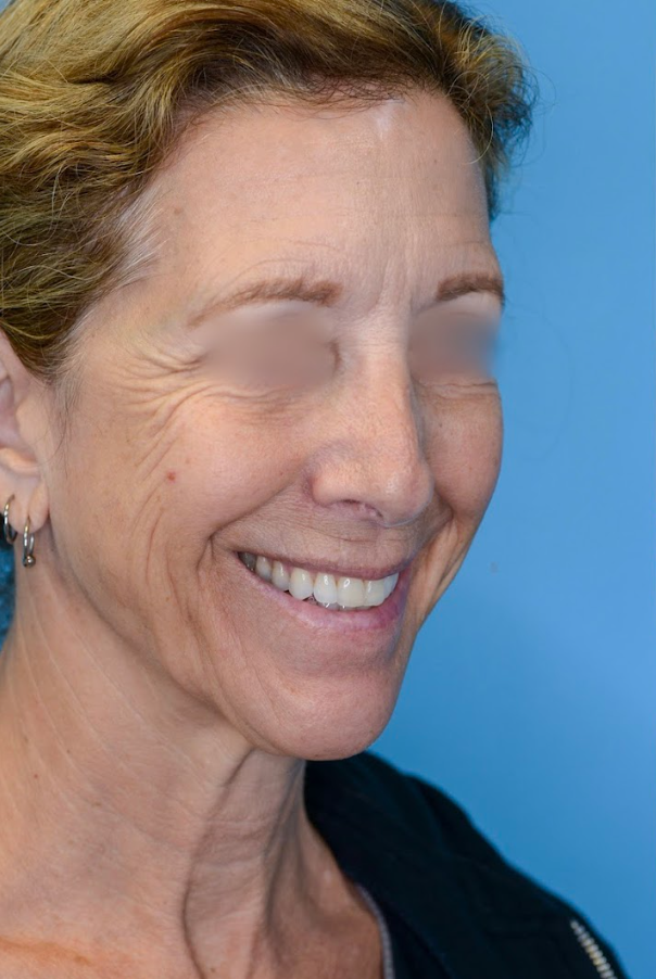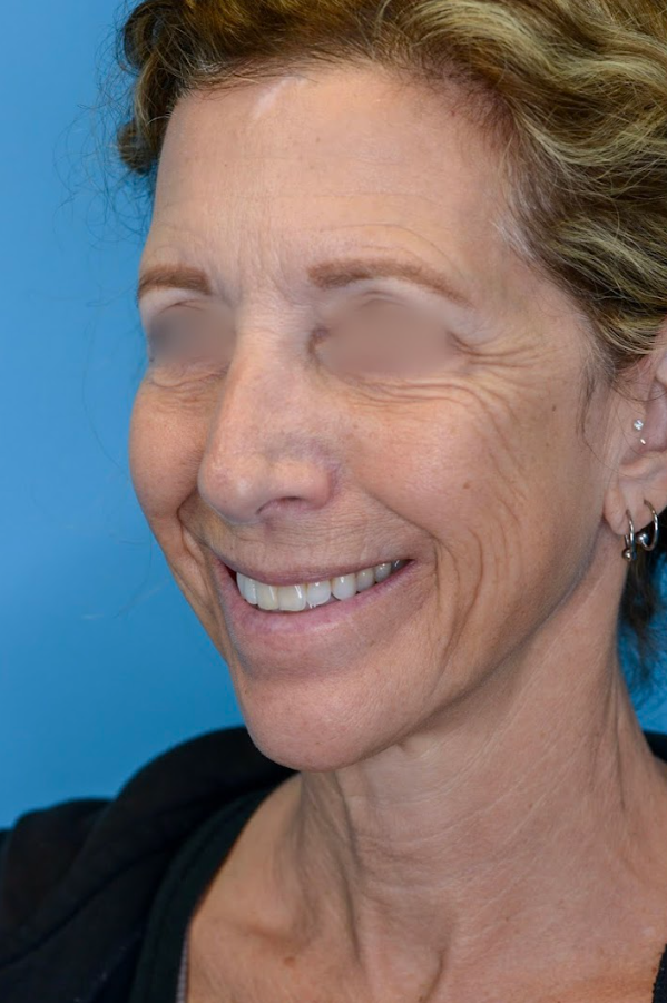 62 year-old female with global aging face concerns including heavy brows, lower eyelid bags, facial volume loss, jowling, and neck laxity who underwent deep plane facelift, deep neck lift, brow lift, lower blepharoplasty, facial fat transfer, and CO2 laser resurfacing for eyelid rejuvenation and facial rejuvenation.