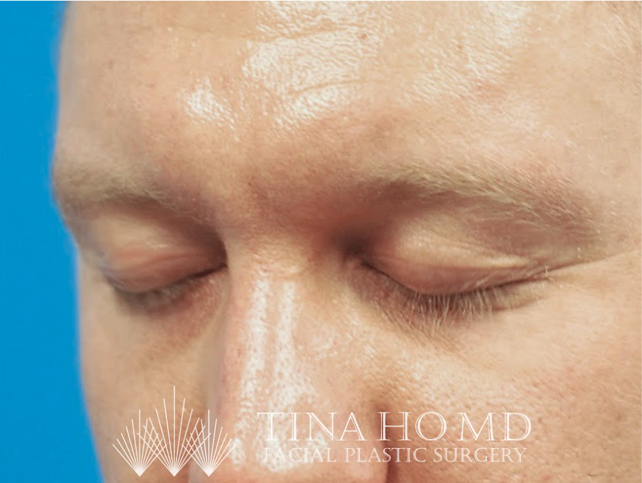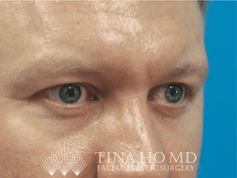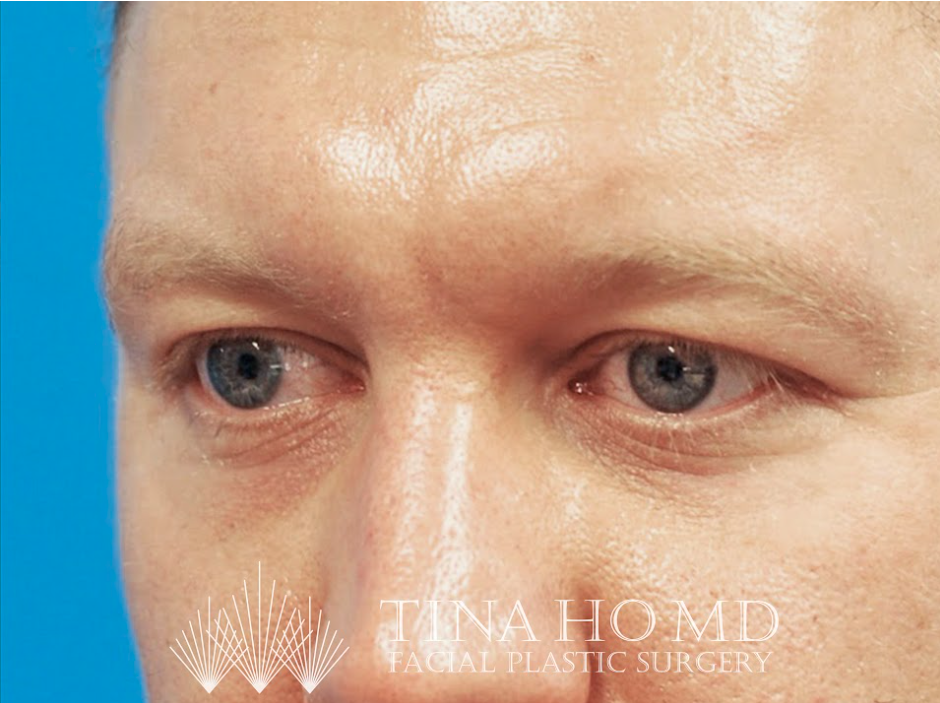 36 year-old male with concerns of lower eyelid bags and tear trough hollowing who underwent lower blepharoplasty with facial fat transfer and CO2 laser resurfacing for lower eyelid rejuvenation