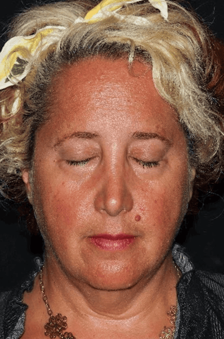 50 year-old female who underwent brow lift, upper blepharoplasty, lower blepharoplasty, facial fat transfer, and CO2 laser resurfacing for eyelid rejuvenation
