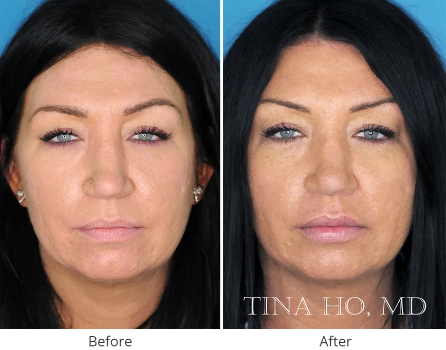 This filler offers several benefits. It can be administered to diminish the appearance of various moderate to severe facial wrinkles, including parentheses lines around the mouth (smile lines), marionette lines stretching from the corners of the mouth, and the nasolabial folds coming down from the sides of the nose. It can also volumize thin lips. Juvéderm® Ultra XC is an FDA-approved filler for lip augmentation and correction of moderate to severe wrinkles and folds with results shown to last up to 1 year. Dr. Tina Ho has extensive experience working with Juvéderm® Ultra XC, which is a popular filler of choice for plumping lips and softening the appearance of nasolabial folds and marionette lines.