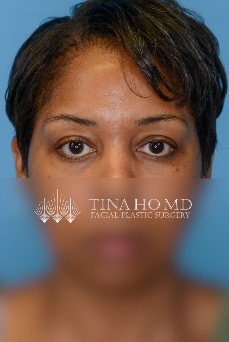 72 year-old female with concerns of aging eyes, face, and neck and lack of jawline definition and history of prior facelift who first underwent first brow lift, upper eyelid surgery, and lower eyelid surgery with facial fat transfer and CO2 laser resurfacing then revision deep plane facelift and deep neck lift for facial rejuvenation and neck rejuvenation as well as facial and jawline contouring.
